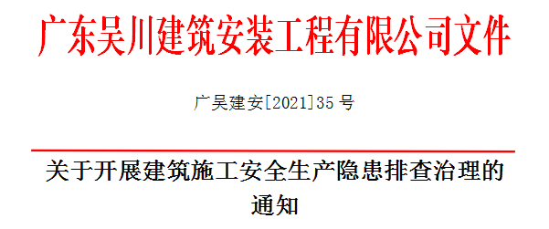 一、根據(jù)省、市住建主管部門關(guān)于全面開展建筑施工安全生產(chǎn)隱患排查治理的通知要求,公司董事會要求各分公司、工程項(xiàng)目部從即日起對在建工地開展建筑施工安全生產(chǎn)隱患排查治理行動。
