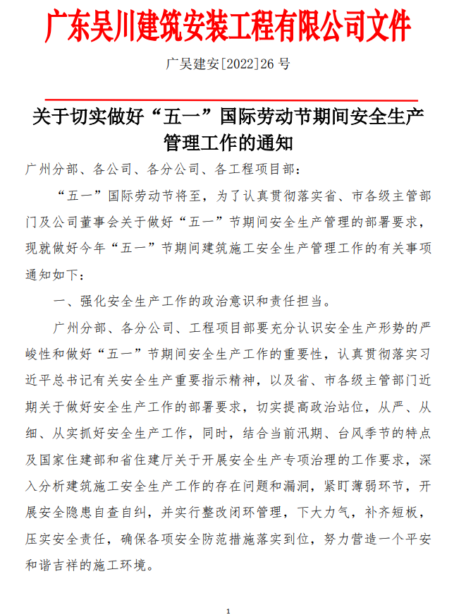 關于切實做好“五一”國際勞動節期間安全生產管理工作的通知