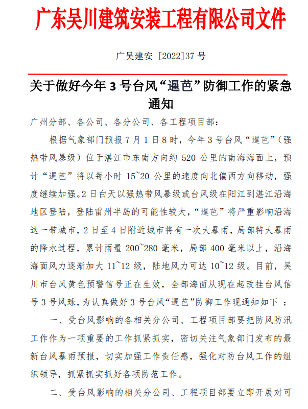 廣吳建安[2022]37號文:關于做好今年3號臺風“暹芭”防御工作的緊急通知