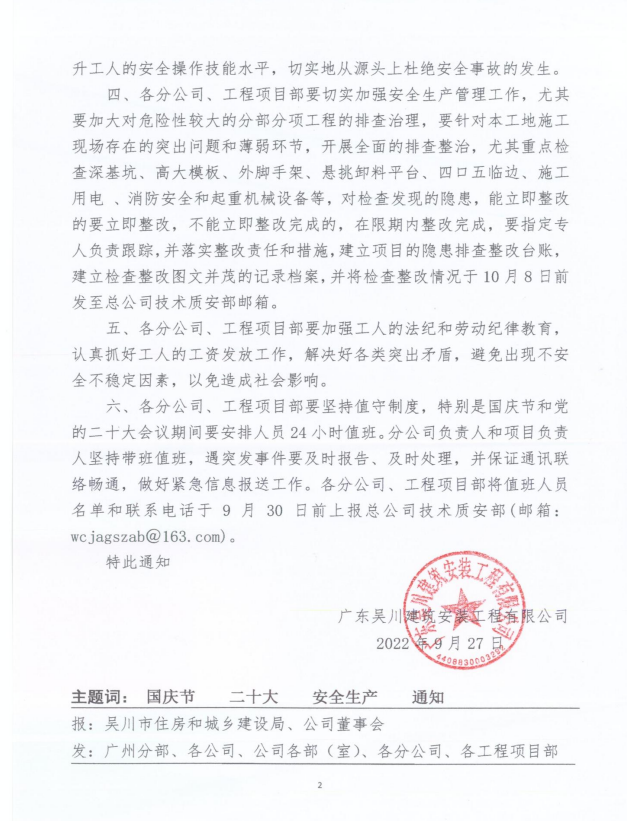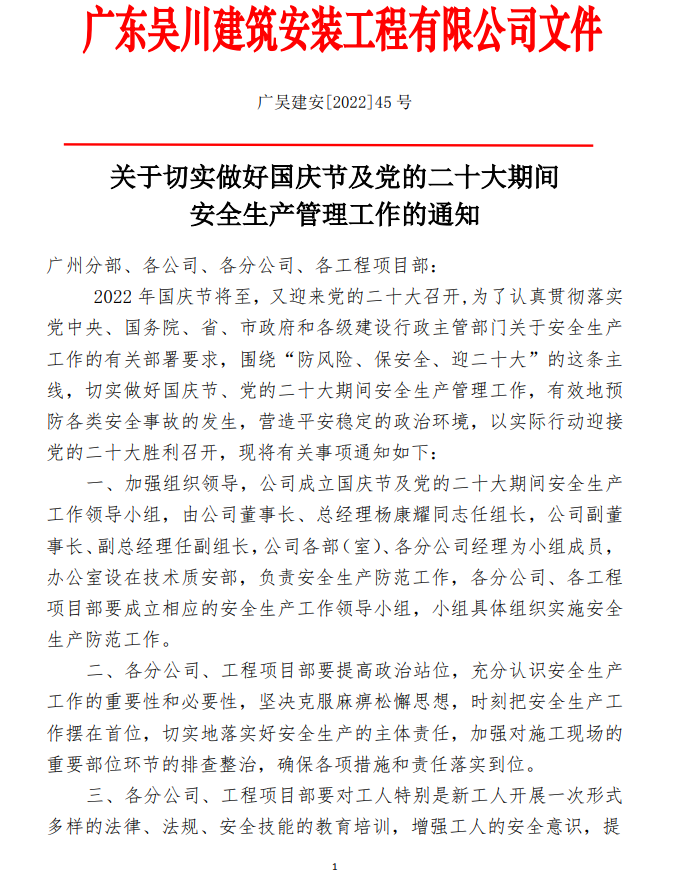 關于切實做好國慶節及黨的二十大期間安全生產管理工作的通知